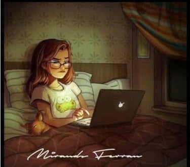 Todo empezó hace años, cuando abrí un blog de relatos. Me daba tanto corte publicar que escribía bajo el seudónimo de Miranda Ferrán. De hecho, Miranda aparece en muchos de mis textos, y también en mi novela Mi Vida en Modo Avión.